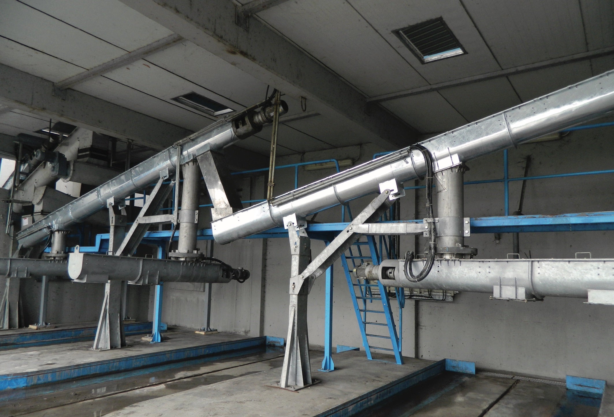 The transport of coarse, fine, or compacted solids, sludge, sand, and industrial process solids can be achieved using enclosed spiral conveyors, trough conveyors with covers, or belt conveyors. These can be sized, designed, and manufactured according to the client's needs and requirements.